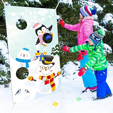 Watinc Jeu De Lancer Bonhomme De Neige Avec 4 Poufs Poire Jeu De Fete De Noel