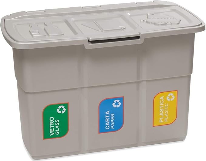 Sf Savino Filipo Meuble 3 Poubelles Gris Recipient Unique Divise En 3 Compartiments De 25 L Chacun Pour Tri Selectif Poubelle Avec Couvercle Et Autocollants En Verre Papier Plastique Amazon Fr Cuisine Maison