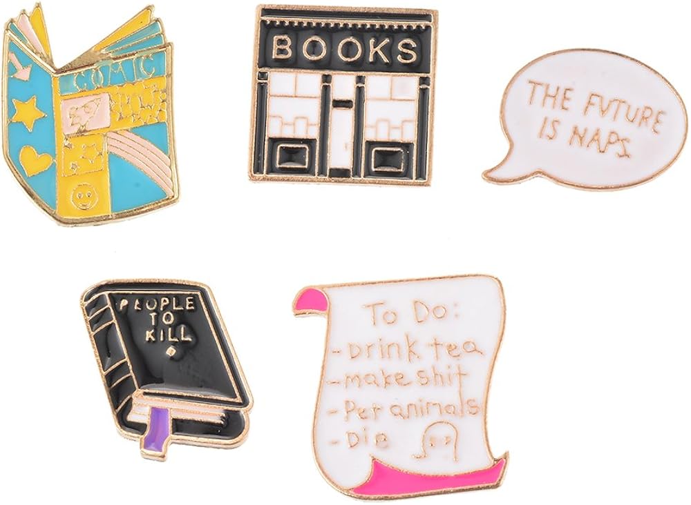 Broche Broche Revers 5 Pcs Ensemble Librairie Bobine Boite De Conversation Livre Texte Carton Broche Broche Pour Femmes Sac Accessoires Amazon Fr Sports Et Loisirs