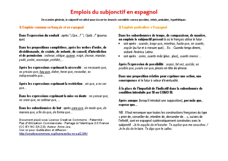 Cours Sur L Emplois Du Subjonctif En Espagnol Emplois Du Subjonctif Emplois Du Studocu