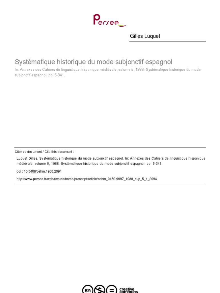 Systematique Historique Du Mode Subjonctif Espagnol Persee