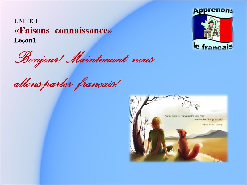 Unite 1 Faisons Connaissance Lecon1 Bonjour Maintenant Nous