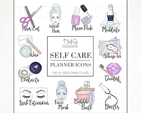Zelfzorg Planner Pictogrammen Clip Art Clipart Aquarel Hand Etsy