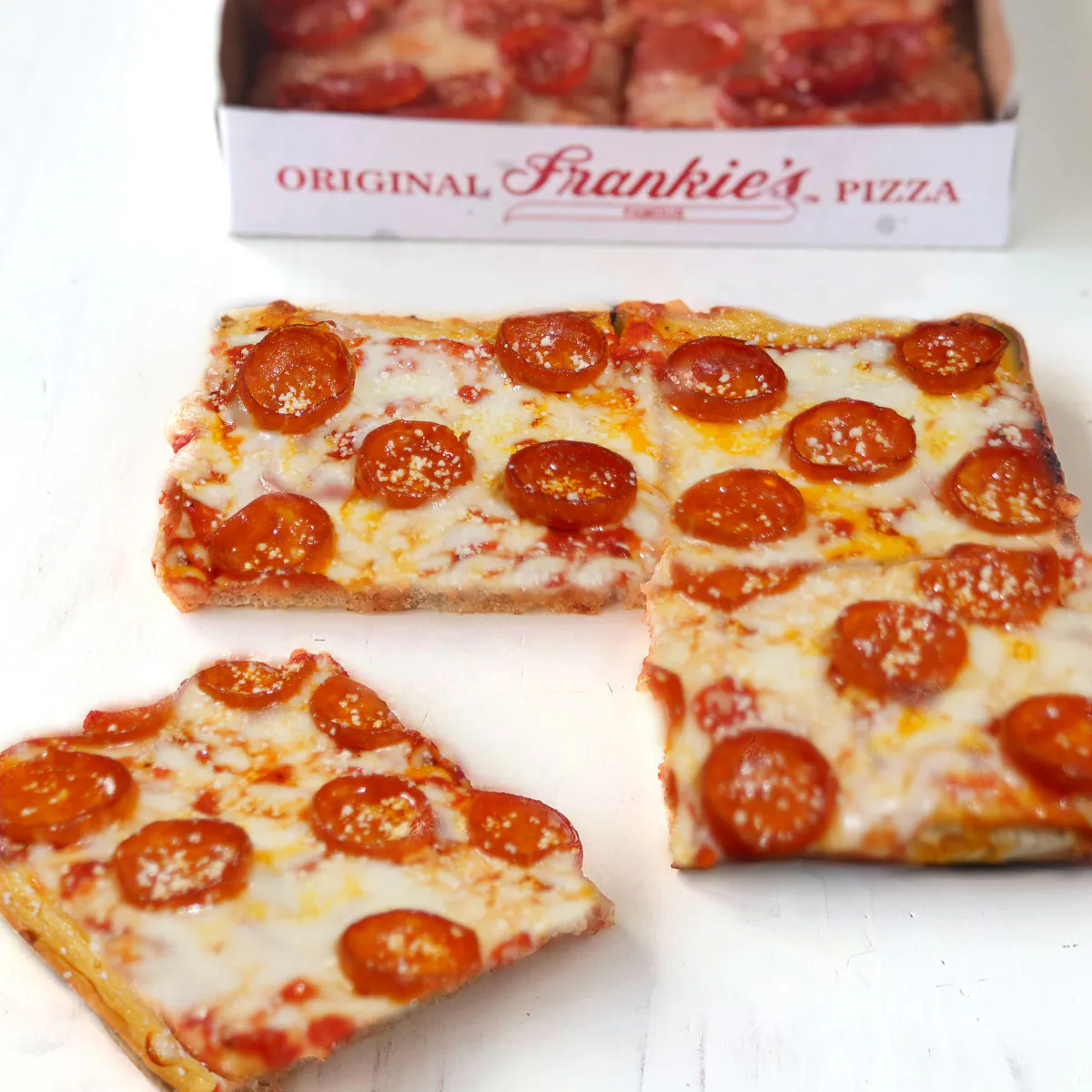 Square Cheese Pepperoni Pizza 6 Pack By Frankie S Pizza Goldbelly