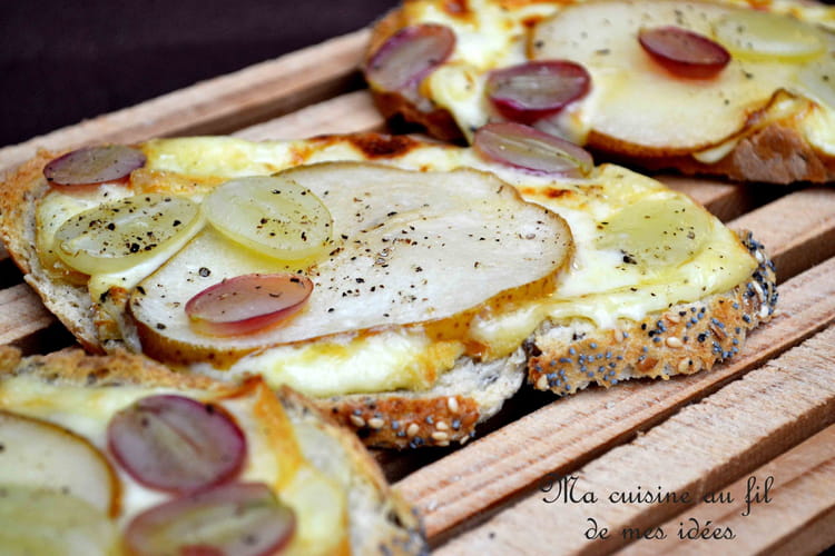 Recette De Tartines Grillees Aux Poires Raisins Et Fromage De Herve