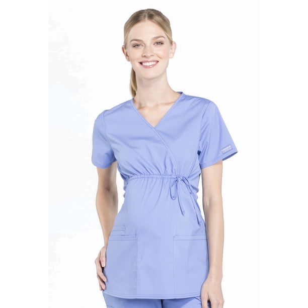Cherokee Cherokee Workwear Professionals Maternity Scrubs Top For Women Maternity Mock Wrap Ww685 L Ciel Blue Walmart Com Walmart Com