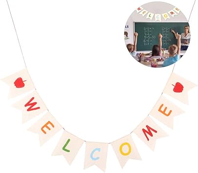 Meteorax Bienvenue Banniere Rustique Toile De Jute Guirlande Pendaison Bruant Decoration Pour La Rentree Scolaire Salle De Classe Pendaison De Cremaillere Fete De Mariage Decoration Photo Prop Amazon Fr Jeux Et Jouets