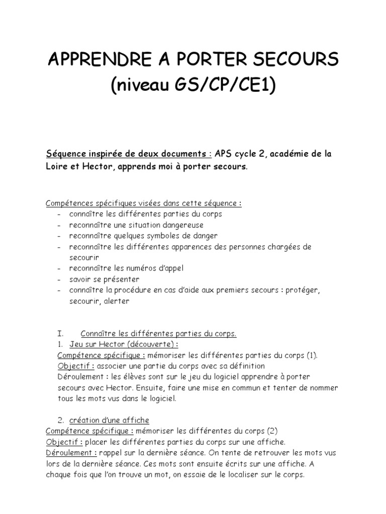 Evaluation Apprendre A Porter Secours Ce2 Pdf Telechargement Gratuit