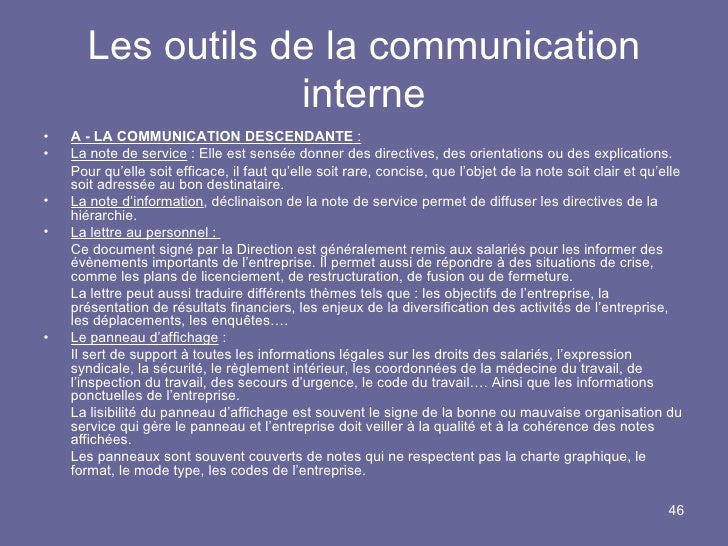 Communication externe et/ou interne, attaché de relations publiques, responsable de communication événementielle, patron d’ag ence, consultant, etc 4 2. En interne qu'en externe La communication interne, peut prendre 3 sens, mais toujours en formel et également développer une communication interne informelle 5 Les outils de la communication interne6 51 Les différents supports utilisés Il existe une multitude de supports Avant de passer à l'action, il faut définir la. 6 outils de communication interne La communication interne dans une entreprise (PME, GE) est très importante Elle permet d’informer les salariés sur les évolutions dans l’entreprise, afin qu’ils se sentent intégrés Un employé informé est déjà en grande partie un employé satisfait, et donc motivé.