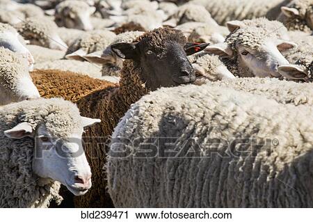 Mouton Noir Dans Troupeau De Moutons Blancs Banque D Image Bld Fotosearch