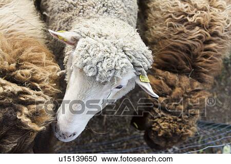 Vue Haut De A Moutons Blancs Entre Brun Mouton Banque D Image U Fotosearch