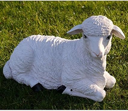 Resine Moutons Blancs Ram Agneau Animal Jardin Ornement Statue De Sculptures Deux Types Debout Couchee Laying Down 40x25cm Amazon Fr Jardin