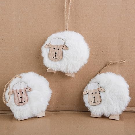 Logbuch Verlag 3 Moutons Blancs Ours De Paques En Bois Et Laine Naturelle Petit Cadeau De Paques Decoration De Paques Amazon Fr Cuisine Maison