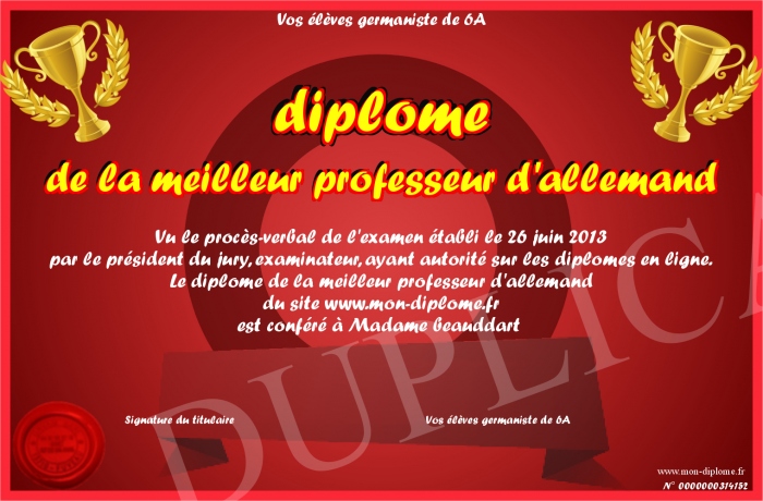 Diplome De La Meilleur Professeur D Allemand