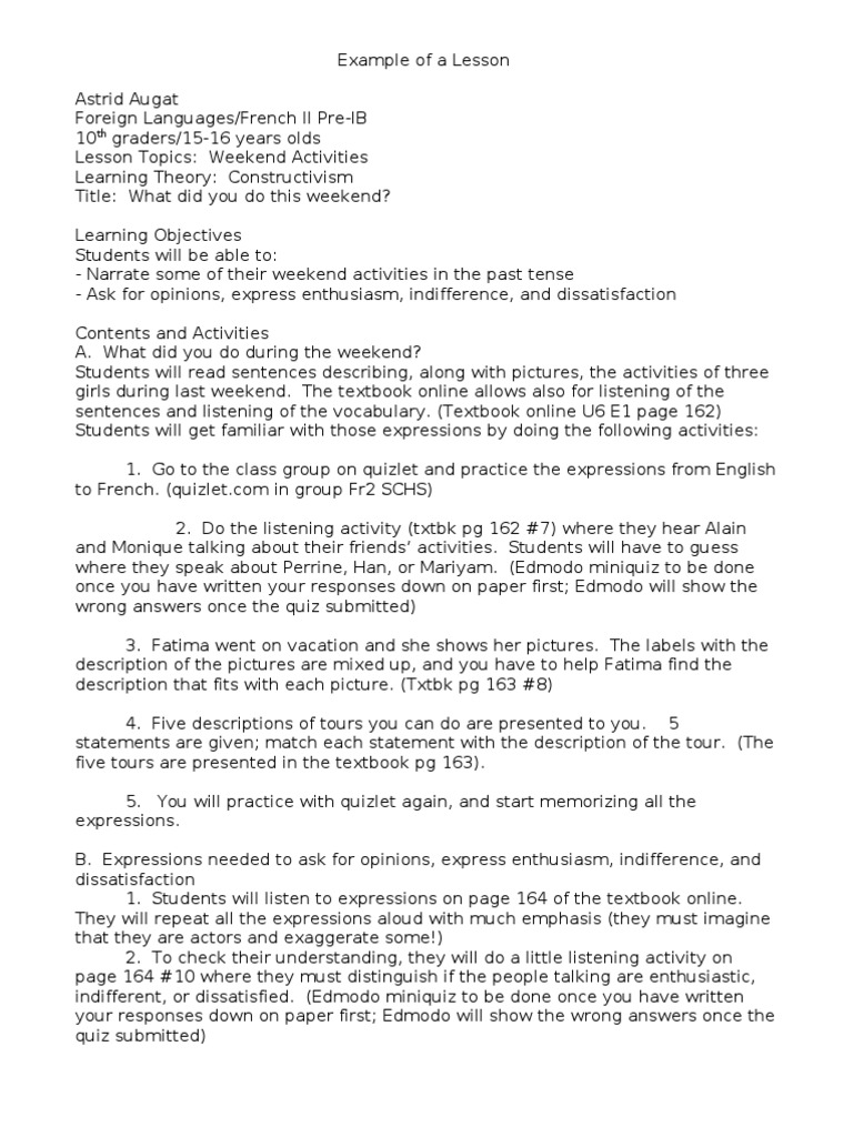 What Did You Do Last Weekend Essay In French
