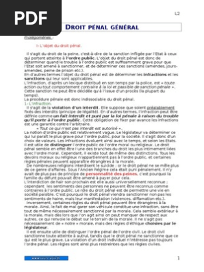 DROIT PENAL GENERAL Le droit pénal est une branche du droit positif, qui est le droit applicable sur un territoire La peine plancher, loi du 10 août 07, pour les récidivistes, jugement pour la deuxième infraction identique à la première, il se voit appliquer une peine plancher, Ex si maximum 3. O Scribd é o maior site social de leitura e publicação do mundo. De prononcer une peine d’emprisonnement inférieure à deua ans pour réprimer le délit de blanchiment douanier, était contraire aua principes de nécessité et d’individualisation des peines découlant de l’article 8 de la Déclaration de 17.