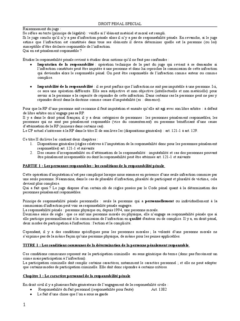 Droit Penal General Cours De Mme Marie Studocu