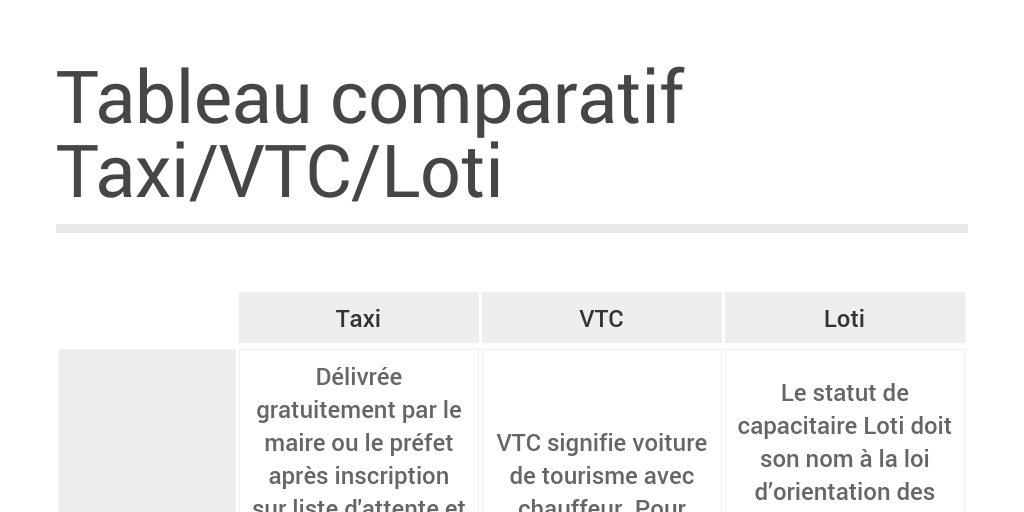 Tableau Comparatif Vtc Taxi Loti Infogram