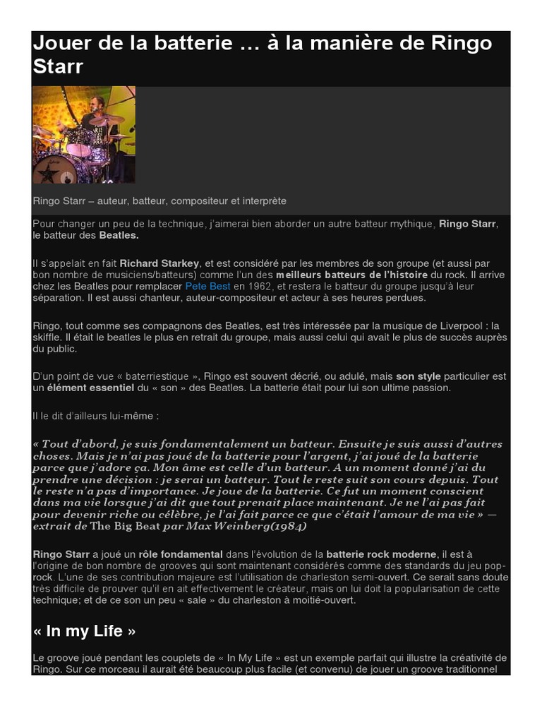 Drum Grooves Ringo Star Ringo Starr Les Beatles