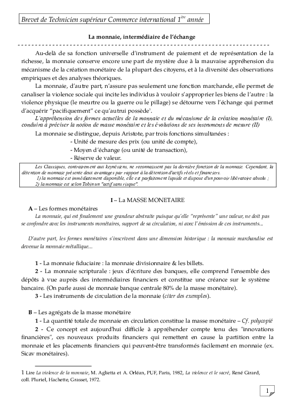 Pdf Formation Les Bases De La Creation Monetaire Cours Economie