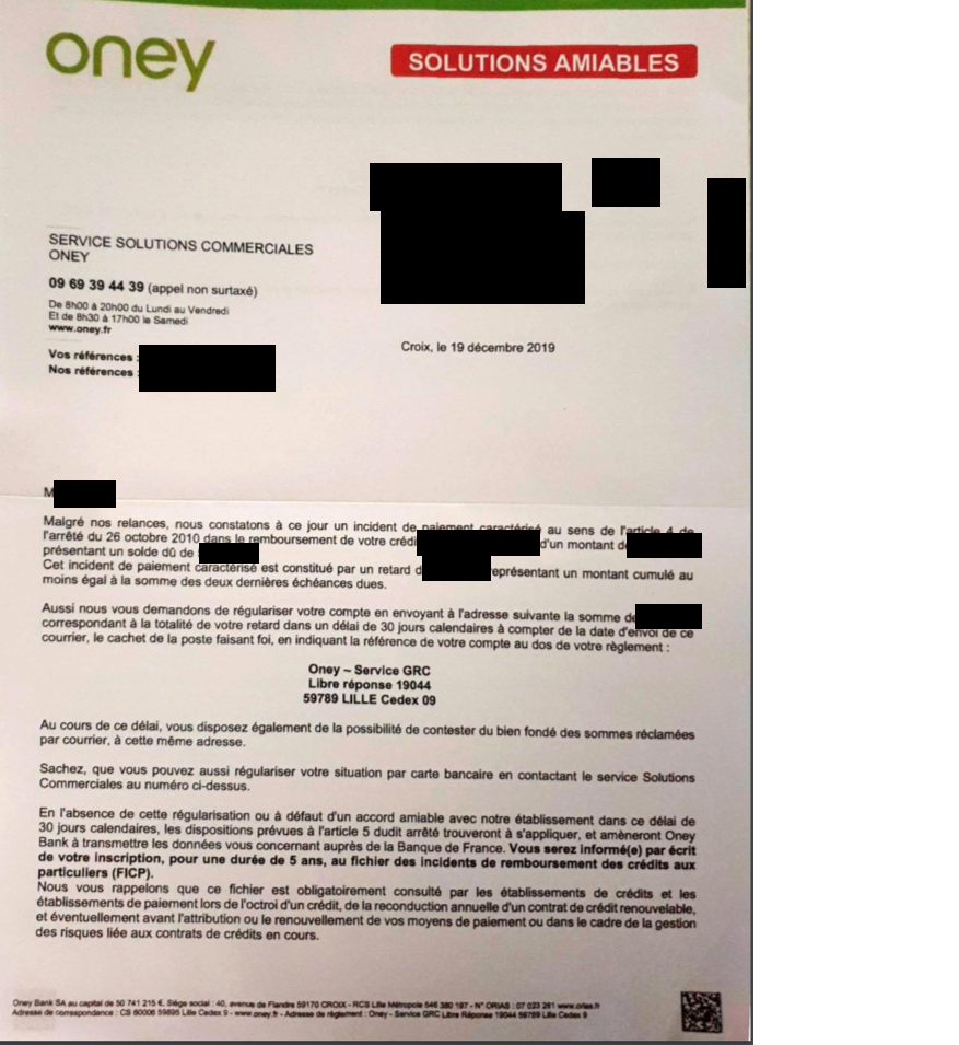 Autre Oney Relance Courrier Remboursement De Credit Forum Banque Et Argent