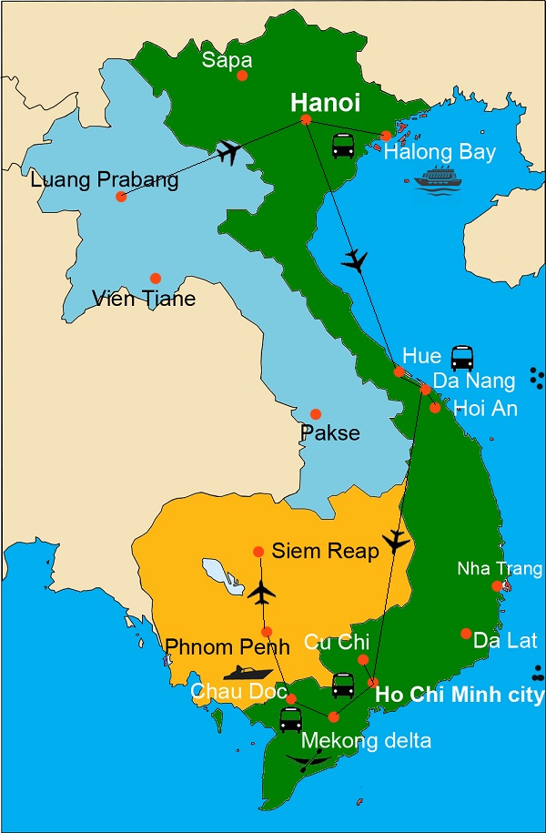 Map Of The Route For Vietnam Laos Laos Thailand Travel Cambodia Itinerary