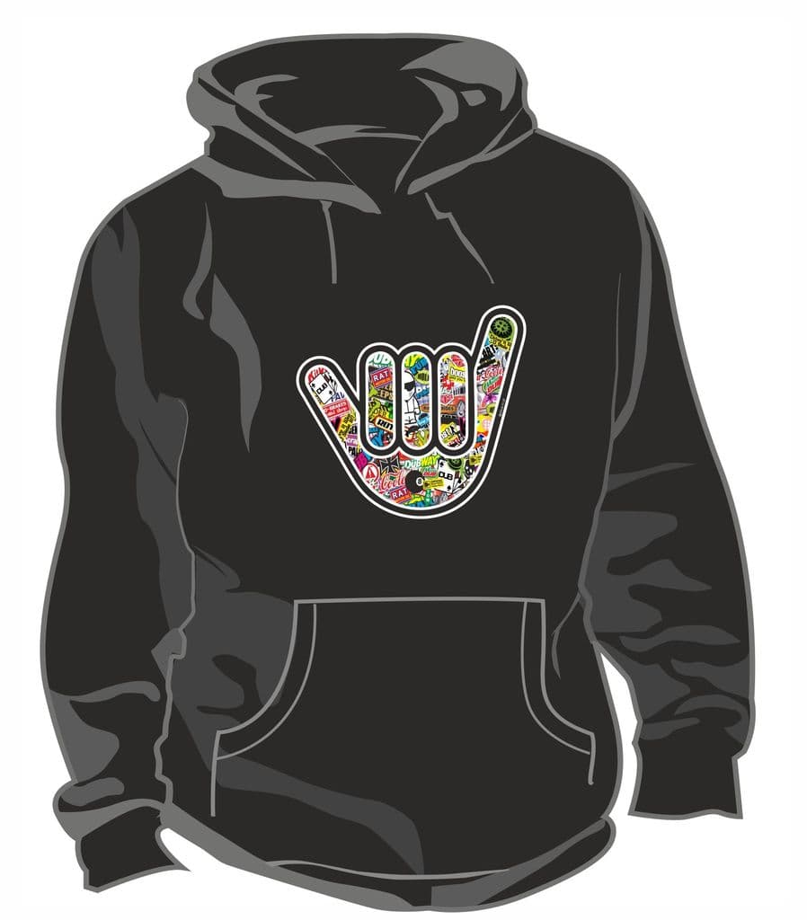 No Worries Hand With Stickerbomb Motif Novelty Design For Vw Camper Van Owner Etc Unisex Hoodie