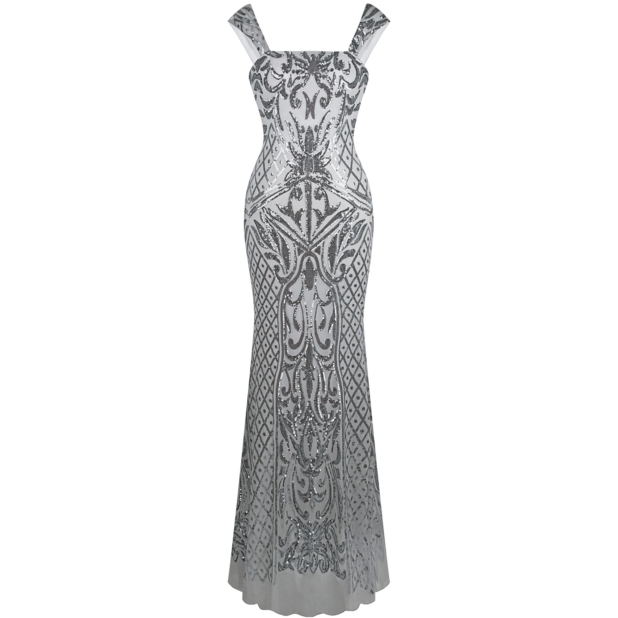 Angel Fashions Women S Square Collar Silver Sequin Floral Pattern Wrap Evening Dress Walmart Canada