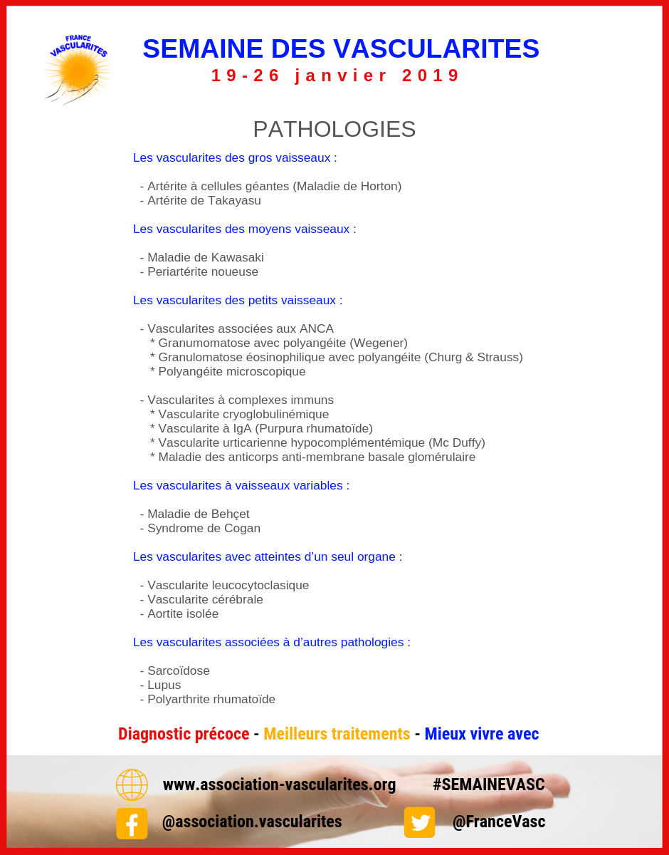 Les vasculites constituent un ensemble de pathologies caractérisées par une atteinte inflammatoire de vaisseaux sanguins entraînant des modifications structurelles de leur paroi Tous les types de vaisseaux peuvent être atteints et les manifestations cliniques sont très hétérogènes On distingue les vasculites secondaires ( d'origine infectieuse), fréquentes, des vasculites. La vascularite cérébrale (parfois le mot angiite est utilisé au lieu de «vascularite») est une vascularite (inflammation de la paroi des vaisseaux sanguins ) touchant le cerveau et parfois la moelle épinière Elle affecte tous les vaisseaux très petits vaisseaux sanguins ( capillaires ), vaisseaux sanguins de taille moyenne ( artérioles et veinules ) ou gros vaisseaux sanguins. Vascularites systémiques ce groupe de maladies est caractérisé par une inflammation et une nécrose des parois vasculaires des artères et veines de tout calibre quelle qu'en soit la localisation (aspect histologique de vascularite leucocytoclasique avec un infiltrat polymorphe périvasculaire où prédominent les polynucléaires neutrophiles à noyau pycnotique alors que dans les.