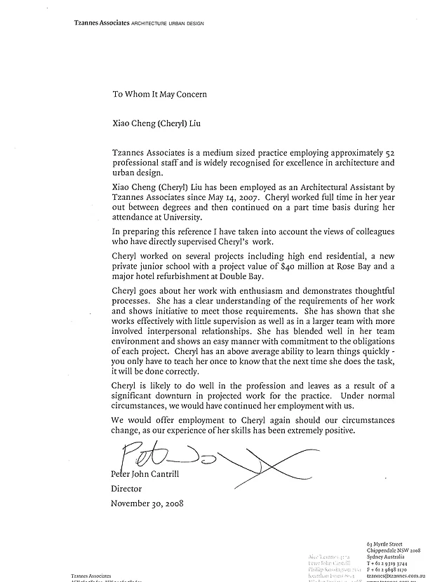 Work Reference Letter Pannell