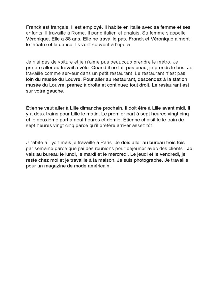 Adhérente #7349 ANASTASIYA MINSK Biélorussie Âge 37 Signe de zodiaque Poissons Taille 167 Poids 60 Couleur des yeux vert Couleur des cheveux chatain Formation universitaire Profession Juriste Famille célibataire Nombre d'enfants aucun Veutelle encore avoir des enfants oui Hobbies, Capacités cuisine, sport, voyages, théatre, arts, lecture, cinéma Caractère gentille, tendre. Ce n'est pas facile, je suis italien et je parle un Français de bonne qualité, et surtout j'ai travaillé avec les Français et je vis dans les pays Francophones Le Français parlé est très rapide et les mots sont liés, difficile à comprendre par un italien, une langue dans laquelle chaque mot est "bloqué" par la voyelle finale. This lesson teaches gender use such as plural and singular in French, vocabulary list about languages, nationalities, and countries and finally common phrases about greeting I will try to give examples using both vocabulary and grammar Going through the whole page should take about 30 min.
