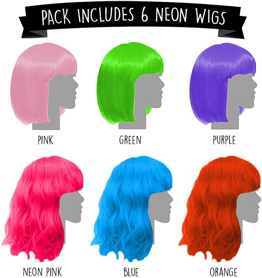 Violette Evjf Jeune Diplomee Future Mariee Halloween Anniversaire Depart A La Retr Fete Deguisee Decorations Et Accessoires Pour Soiree Pack De 6 Perruques Colorees Accessoires Perruques Et Postiches