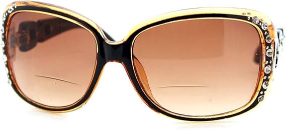 Pour Femme A Double Foyer Lentille Lunettes De Soleil Surdimensionnees Carre Strass Cadre Brown Amazon Ca Vetements Et Accessoires