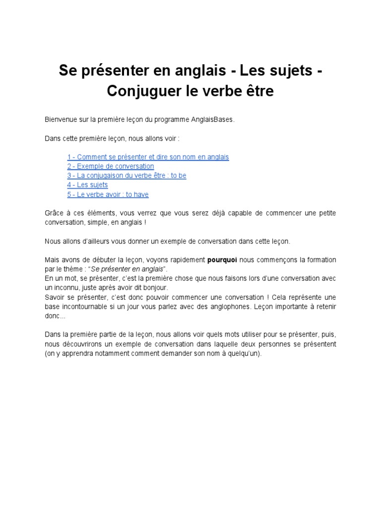 Se Presenter En Anglais Les Sujets Conjuguer Le Verbe Etre Verbe Mecanique Du Langage