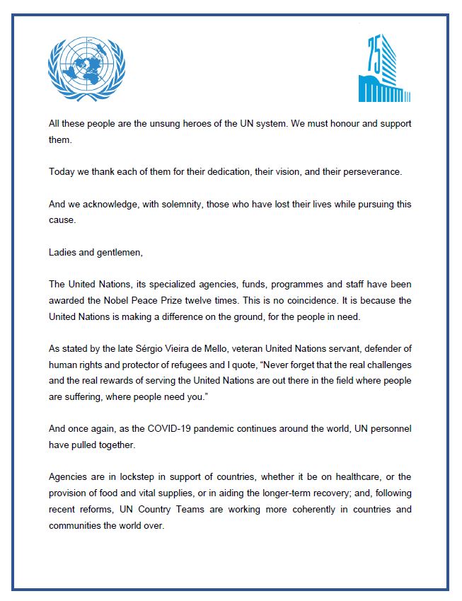 Un Ga President Around The World At Any Given Time Tens Of Thousands Of Un Personnel Are Working For The Betterment Of Humanity All These People Are The Unsung Heroes