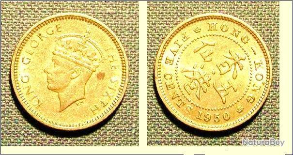 Monnaie 1950 Hong Kong 5 Cents Or Pl Roi George Rare Edition Limitee Prix Depart 1 Euro Monnaies