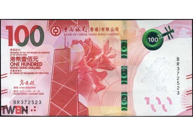 Billet De Banque Hong Kong Pick 348 100 Dollars 01 01 18 Neuf