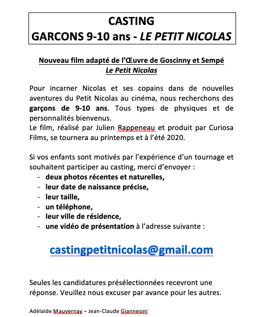 Casting Garcons 9 10 Ans Le Petit Nicolas Pour Incarner Nicolas Et Ses Copains Dans De Nouvelles Aventures Du Petit Nicolas Au Cinema Film Adapte De L Oeuvre De Goscinny Et Sempe
