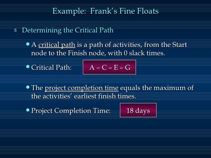 And she never had to slack up for words. Computing Slack Time Earliest Earliest Latest Latest On Start Finish Start Finish Slack = Critical Activity ES EF LS LF (LS – ES) = (LF – EF) Path A 0 2 0 2 0 Yes B 0 3 1 4 1 No C 2 4 2 4 0 Yes D 3 7 4 8 1 No E 4 8 4 8 0 Yes F 4 7 10 13 6 No G 8 13 8 13 0 Yes H 13 15 13 15 0 Yes Dr. When it comes to deriving the estimates, the PERT model takes a statistical route to do that.