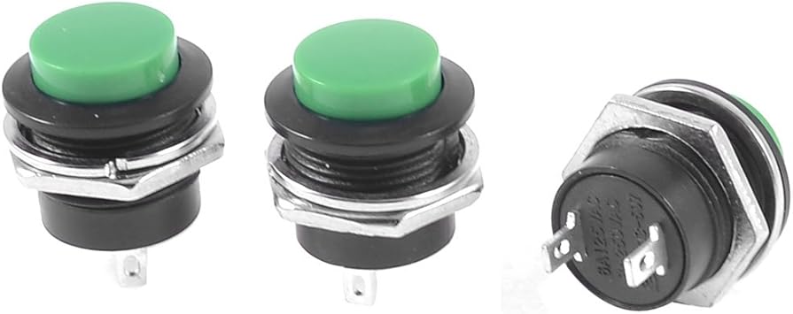 Amazon Com Uxcell Green Spst Off On No 15mm Momentary Push Button Switch Ac 6a 125v 3a 250v 3 Pcs Home Improvement