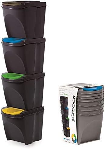 Lot De 3 Poubelles A Recyclage Litres Empilables En Plastique Avec Couvercles A Charniere De Couleurs Differentes Amazon Fr Cuisine Maison