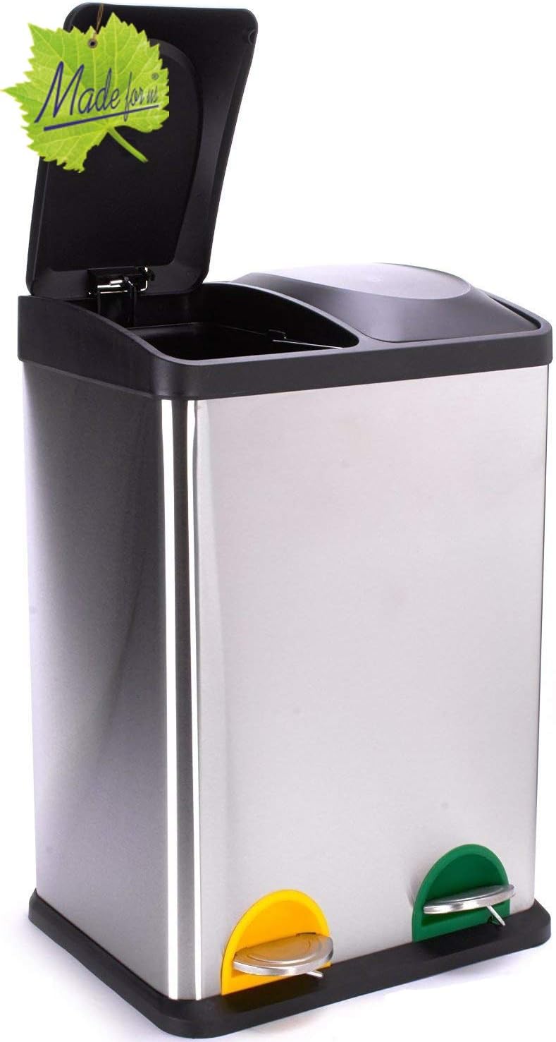 Made For Us Poubelle A Pedale En Acier Inoxydable De 40 L 2 Compartiments De Tri Des Dechets De L Amazon Fr Cuisine Maison
