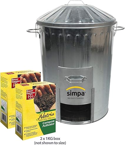 Simpa 125l 125 Litre Poubelle En Metal Galvanise Avec Porte Trappe Et 2pc Bayer Compost Activateur Lot Jardin Allotments Recyclage Composteur Poubelle Amazon Fr Jardin