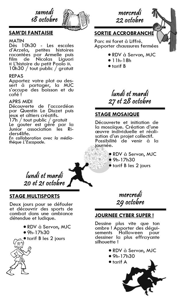 Club Ados Programme Des Vacances De Toussaint Programmes De L Accueil De Loisirs Vivaraize