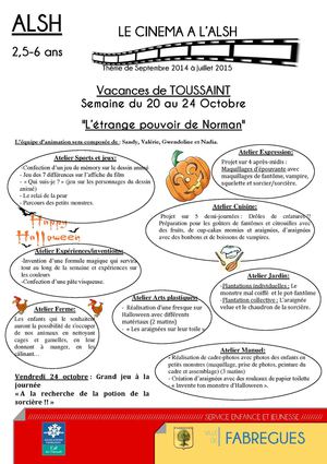 Planning Vacances De Toussaint 14 Le Blog Du Centre De Loisirs