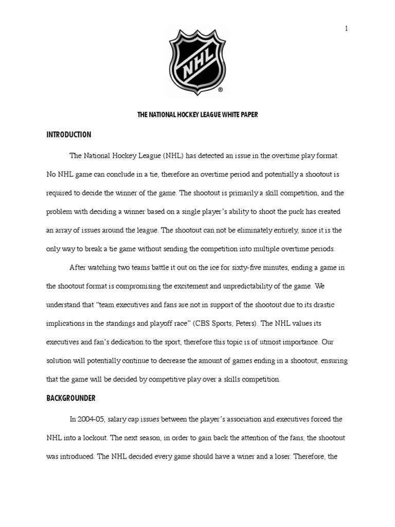 White Paper National Hockey League Sports Rules And Regulations