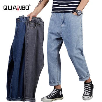Surdimensionne 42 46 48 Mode Ample Hip Hop Cheville Longueur Pantalon Jean Nouveau Automne Stretch Taille Hommes Denim Large Jambe Pantalon Leather Bag