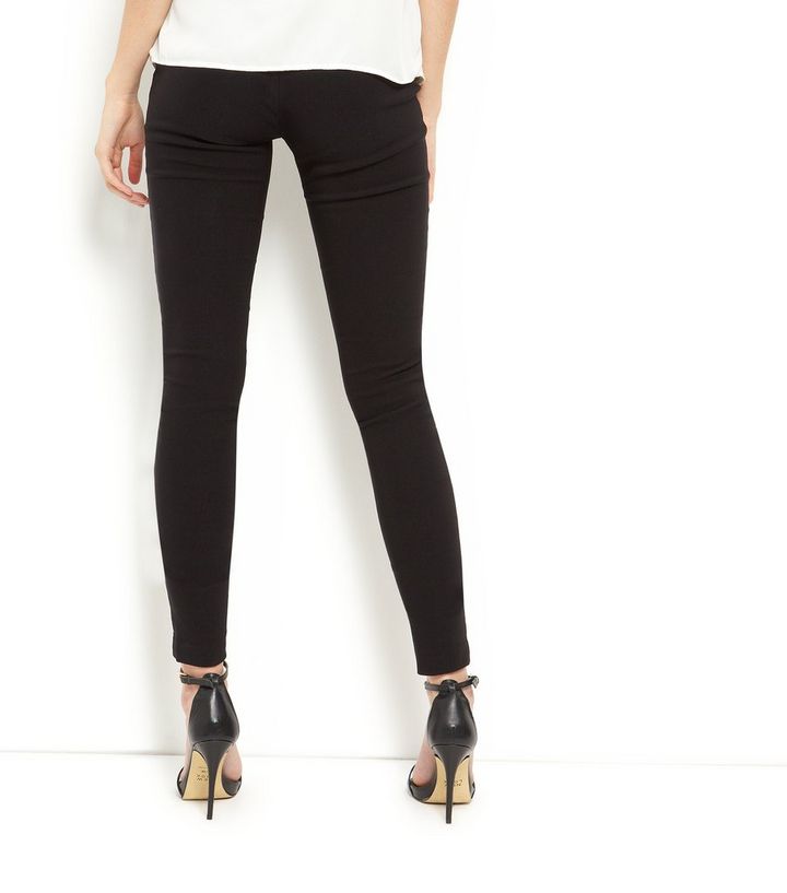 Pantalon Slim Tall Noir A Double Zip En Bengaline Longueur 38 Po New Look