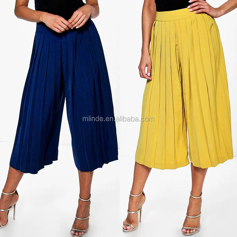 Pantalon Femme Couleur Uni 3 4 Longueur Pantalon Large Jambe Haute Plier Sur La Taille Pantalon Palazzo Tisse Plisse Sur Mesure Culottes Pantalon Buy Elegant High Waist Palazzo Pants Wholesale Woven Pleated Tailored