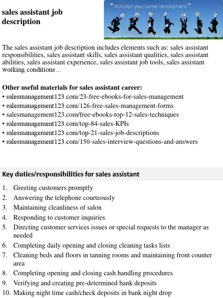 Sales Assistant Job Description Sales Recruitment
